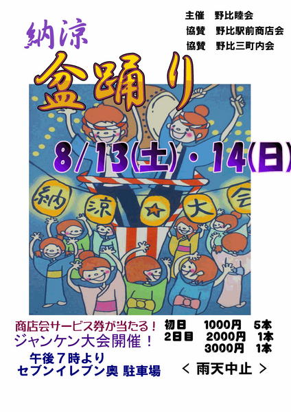 野比駅前商店会では季節ごとにSALEを行ってます。 また、餅つきや盆踊りなどさまざまなイベントも盛りだくさんです。 今年で商店会も40年を迎えましたますますがんばります。
