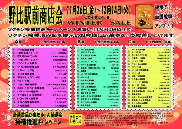 野比駅前商店会では季節ごとにSALEを行ってます。