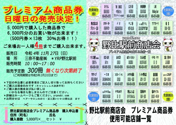 京急YRP野比駅周辺にある「がんばります!」と「やさしいおもてなし」がキャッチフレーズ商店街。季節ごとの売り出しや、地域各種イベントを共催・後援しています。