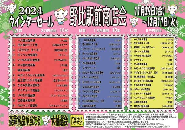 野比駅前商店会では季節ごとにSALEを行ってます。